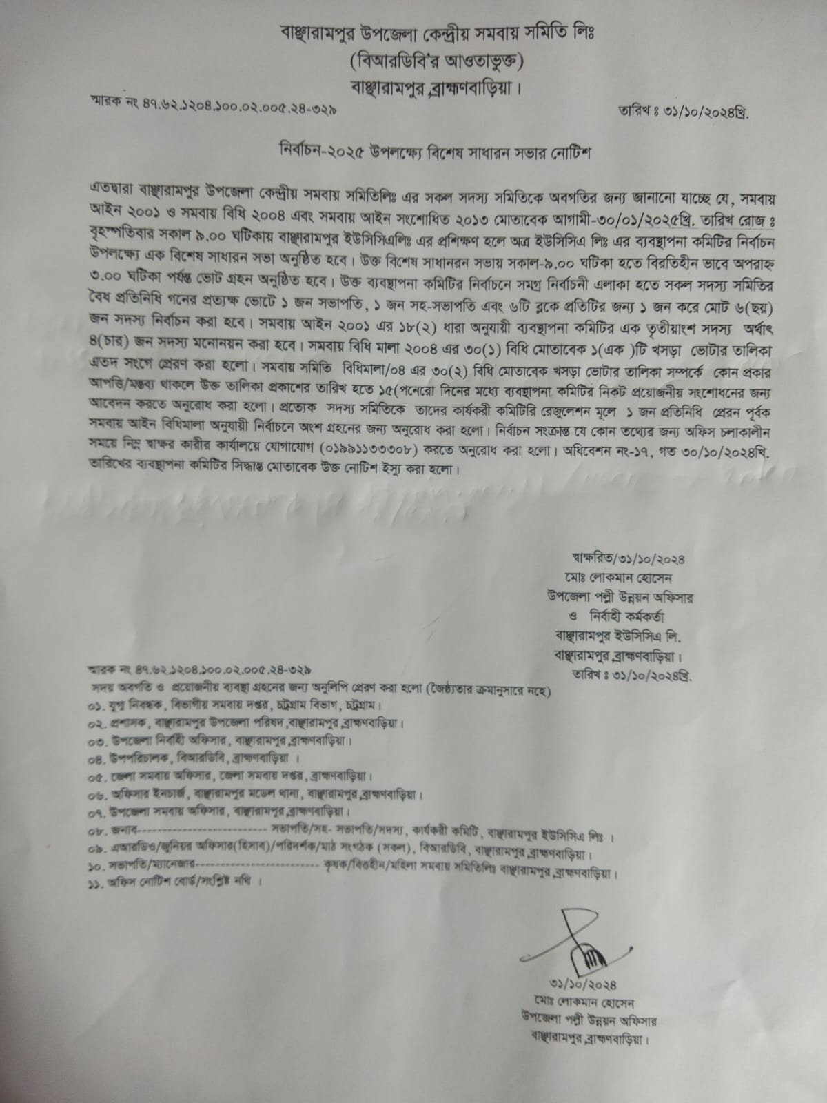 নির্বাচন ২০২৫ উপলক্ষ্যে বিশেষ সাধারন সভার নোটিশ।